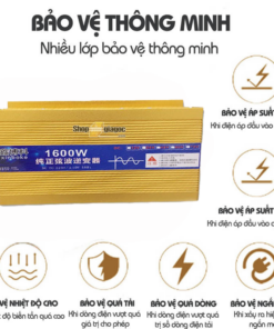 Bộ Chuyển Đổi Nguồn Sin Chuẩn 12V/24V/48V/60V/72V Sang 220V 1600W; chức năng dùng đổi nguồn từ bình ắc quy sang 220V sử dụng cho các thiết bị điện trong gia đình. Bộ đổi điện sin chuẩn giúp nâng cao tuổi thọ của các thiết bị điện trong quá trình sử dụng.