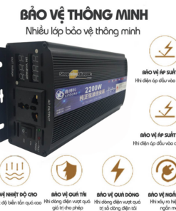 Bộ Chuyển Đổi Nguồn Sin Chuẩn 12V/24V/48V/60V/72V Sang 220V 2200W; chức năng dùng đổi nguồn từ bình ắc quy sang 220V sử dụng cho các thiết bị điện trong gia đình. Bộ đổi điện sin chuẩn giúp nâng cao tuổi thọ của các thiết bị điện trong quá trình sử dụng.