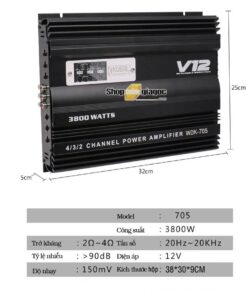 Bộ Khuếch Đại Âm Thanh Ô Tô 4 Kênh 3800W Kuerl V12 YH705