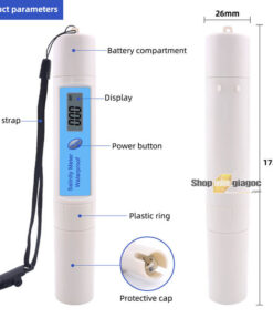 - Hiển thị giá trị độ mặn chính xác, kích thước nhỏ gọn và trọng lượng nhẹ, dễ dàng và dễ mang theo, thuận tiện để sử dụng.