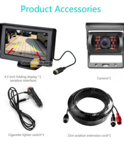 Combo Camera Lùi Chống Nước Gắn Xe Tải Màn Hình 4.3 Inch bao gồm một màn hình 4.3 inch và camera lùi giúp tài xế quan sát phía sau xe một cách dễ dàng hơn. Là một sản phẩm cần thiết cho chuyến đi của bạn an toàn hơn.