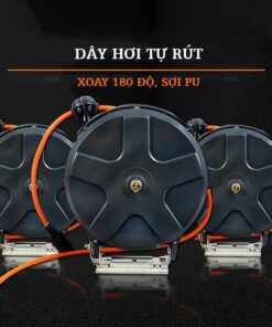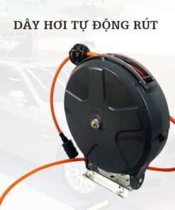 Cuộn Dây Hơi Tự Động Rút 12m với dây dẫn khí nén thu hồi tự động; chuyên dụng trong các garage sửa chữa xe, nhà xưởng sản xuất. Giữ cho xưởng của bạn thật ngăn nắp, an toàn và chuyên nghiệp.
