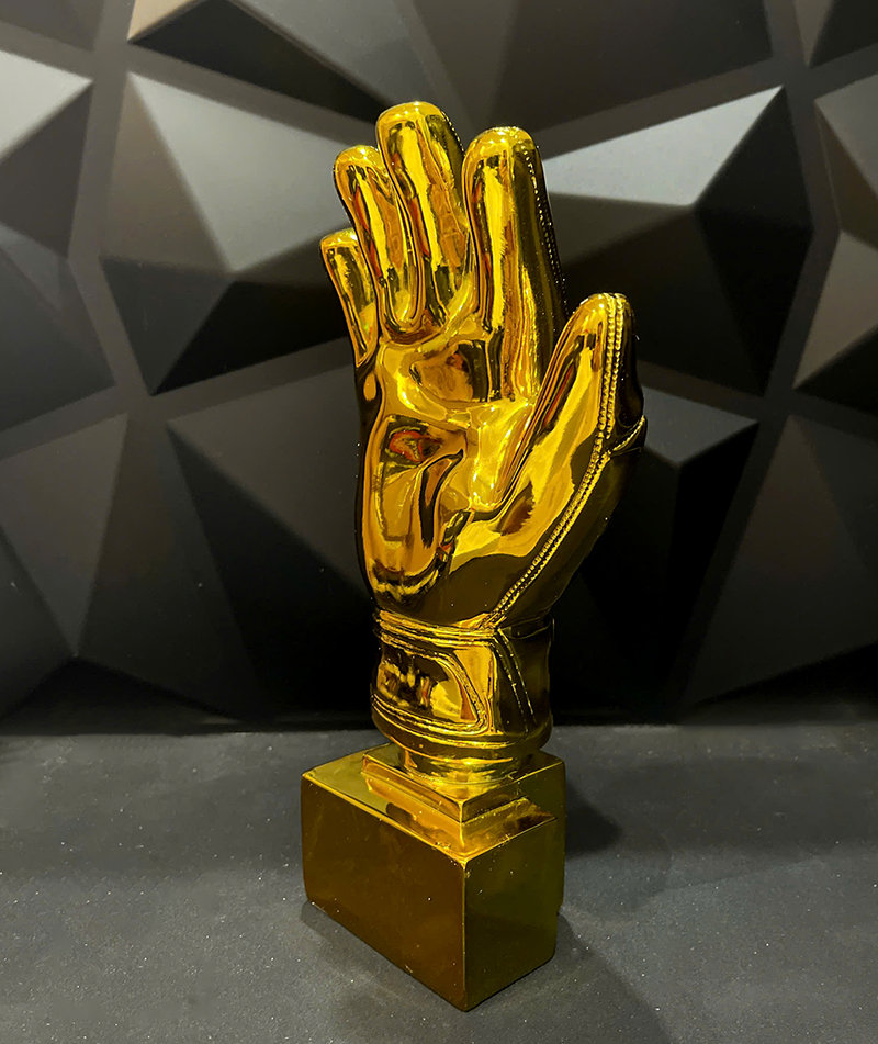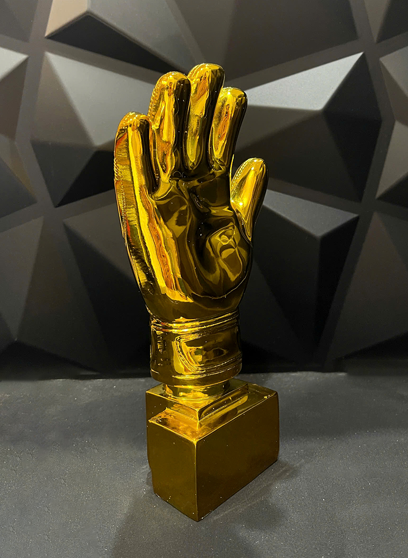 Cúp Găng Tay Vàng được làm bằng chất liệu nhựa acrylic với thiết kế sang trọng, chi tiết và tinh tế. Được sử dụng nhiều trong các sự kiện với mục đích lưu lại những kỷ niệm, tôn vinh những cá nhân, tập thể có thành tích xuất sắc hoặc phục vụ cho các nhu cầu đặc trưng khác.