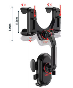Giá Đỡ Điện Thoại Xoay 360 Độ Kẹp Gương Chiếu Hậu Ô Tô với thiết kế cánh tay dài có thể thu vào 0-6cm. Bạn có thể đặt điện thoại của mình theo bất kỳ hướng nào (ngang, dọc), nó sẽ không ảnh hưởng đến tầm nhìn của bạn khi lái xe.