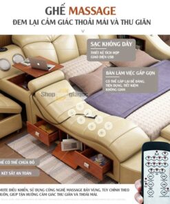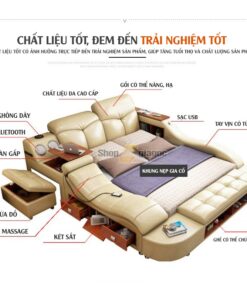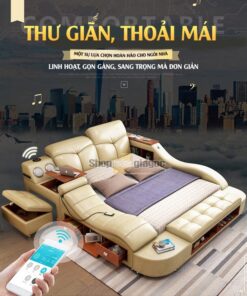 Một chiếc ghế massage thông minh đi kèm; với bộ sản phẩm sẽ giúp bạn thư giãn đầu óc, tăng lưu thông máu, giải tỏa mệt mỏi, đánh tan cơn đau nhức sau; một ngày làm việc mệt mỏi; với remote điều khiển, bạn hoàn toàn; có thể dễ dàng điều khiển sản phẩm; Đặc biệt đây là tính năng không thể thiếu khi sử dụng chiếc giường cho những người thường xuyên vận động; những người có tiền sử bệnh xương khớp, người già xương khớp bị loãng, cơ thể suy yếu…