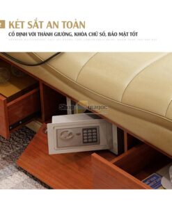 Đặc điểm nổi bật tiếp theo của sản phẩm là ở phía đầu giường, các nhà thiết kế đã đặt một chiếc két sắt được cố định hoàn toàn với thân giường. Rất khó có thể tháo dỡ, điều này giúp đảm bảo khi bạn đặt những đồ vật có giá trị vào trong. Và tất nhiên, két sắt này có hệ thống bảo mật bằng mật khẩu. Giúp bạn hoàn toàn yên tâm khi để những tài sản có giá trị vào trong.