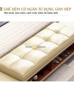 Chiếc ghế dài được tích hợp khung rỗng bên dưới, có thể dùng chứa giày, dép, dép trong nhà…