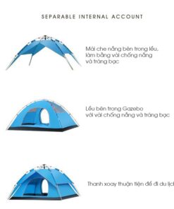Lều Cắm Trại Dã Ngoại Tự Bung 2 Lớp 3-4 Người là một lựa chọn hoàn hảo cho các hoạt động ngoài trời. Thiết kế hình lục giác với khung tự động bật tiện lợi, nhanh chóng. Giúp trải nghiệm chuyến đi của bạn trở nên thú vị và an toàn hơn.