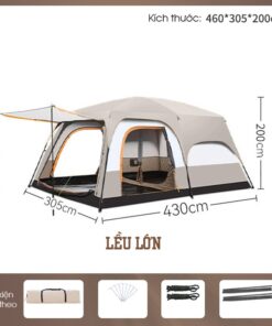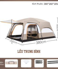| Kích thước lều khi mở | 330*210*185cm (Nhỏ) 380*260*185cm (Trung Bình) 430*305*200cm (Lớn) |