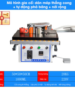 Máy Dán Cạnh Gỗ Mini Tự Động (dán thẳng cong, tự đẩy phôi, cạo cạnh, đánh bóng, cắt đầu cuối); hỗ trợ người sử dụng dán cạnh gỗ công nghiệp nhanh, tiết kiệm sức lao động; đảm bảo tính thẩm mỹ so với phướng pháp dán tay truyền thống.