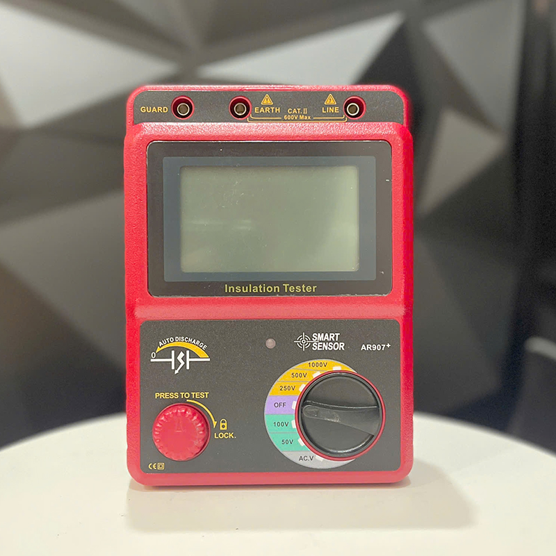 Máy Đo Điện Trở Cách Điện AR907A+, thường được gọi là megohmmeters hoặc máy đo điện trở cao. Được sử dụng rộng rãi để đo máy phát điện, động cơ, máy biến áp điện, hệ thống dây điện, thiết bị điện và các thiết bị điện khác (chẳng hạn như điều khiển, tín hiệu, truyền thông và cáp điện). Được sử dụng trong các quy trình bảo dưỡng định kỳ để chỉ ra những thay đổi về điện trở cách điện của động cơ qua nhiều tháng hoặc nhiều năm.
