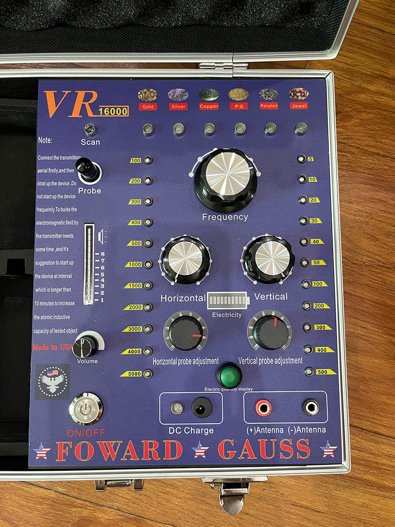 Máy Dò Kim Loại Ngầm VR-16000; có hệ thống phát hiện kim loại và đá quý tiên tiến sử dụng công nghệ FORWARD GAUSS tiên tiến giúp nó trở thành máy dò âm thanh và hình ảnh tốt nhất.