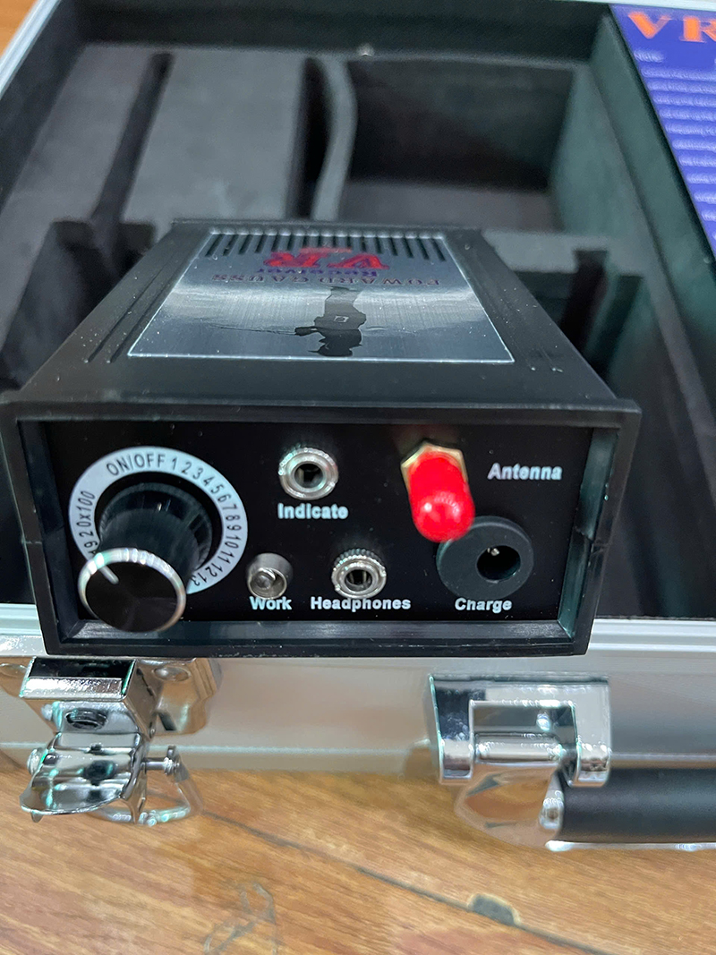- Một hộp đặc biệt có khóa, trong đó có máy phát và các bộ phận khác. Máy phát được cố định trong hộp. Có sáu đèn LED trên cùng máy phát, mỗi đèn đại diện cho một chức năng (vàng, bạc, đồng, vàng sa khoáng, gốm và đá quý). Bên dưới công tắc chọn chức năng là hai núm có nhãn Ngang (Horizontal) Dọc (Vertical).