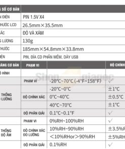 • Phạm vi đo nhiệt độ từ -20 đến 60 ° C. Độ ẩm tương đối từ 0 đến 100%.
