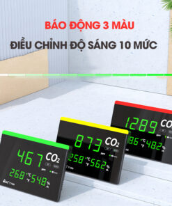 - Báo động 3 mức màu để quan sát trực quan nồng độ CO₂ hiện tại.