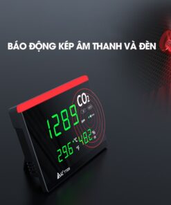 - Báo động kép bằng âm thanh và đèn báo. Giá trị báo động có thể điều chỉnh từ 800 đến 3000ppm và có thể bật/tắt cảnh báo.