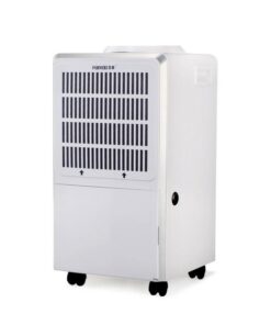 • Máy hút ẩm bao gồm máy nén, bộ trao đổi nhiệt, quạt, bình chứa nước, vỏ và bộ điều khiển.
