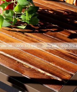 - Gỗ của mặt bàn và lưng ghế được cacbon hóa sau khi chống ăn mòn sâu, bền khi sử dụng ngoài trời.