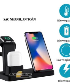• Đế sạc không dây 3 in 1 tích hợp mạch xử lý thông minh bảo vệ quá nhiệt, quá áp và ngắn mạch.