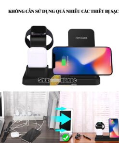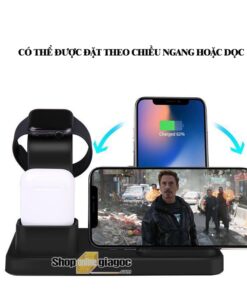 • Bên còn lại dùng để sạc pin cho đồng hồ Apple watch tất cả các phiên bản và tai nghe Airpods.