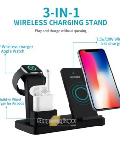 Sạc Không Dây 3 Trong 1 Cho iPhone, iWatch và Airpod HYD-WHQ12; có thể sạc cùng lúc cho Iphone, Apple Watch và Airpods. Giúp tiết kiệm thời gian của bạn một cách hiệu quả.