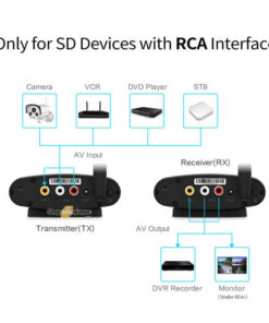 - Đầu phát hỗ trợ 1 kênh đầu vào tín hiệu AV và đầu thu hỗ trợ 1 kênh đầu ra tín hiệu AV .