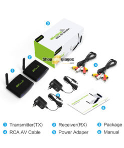 Bộ sản phẩm bao gồm 2 thiết bị đó là thiết bị phát tín hiệu AV không dây (Transmitter) và 1 thiết bị thu tín hiệu AV không dây (Receiver).